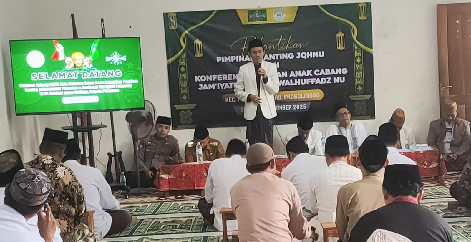 Pakuniran, medianupakuniran.com — Pengurus Anak Cabang Jam’iyyah Qurrā’ wa al-Ḥuffāẓ Nahdlatul Ulama (PAC JQHNU) Kecamatan Pakuniran resmi melantik jajaran pengurus ranting sekaligus menggelar Konferensi PAC. Acara yang berlangsung khidmat dan penuh kekeluargaan ini digelar di Aula PP. Kanjeng Sunan Kalijogo Sogaan, Pakuniran, Probolinggo, Senin (8/12/2025).