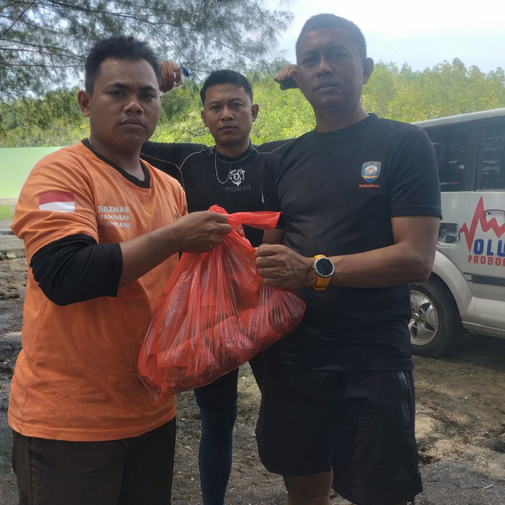 Di tengah perjuangan para relawan yang berjibaku dengan arus sungai dan medan yang melelahkan, BAZNAS Kabupaten Probolinggo turut hadir memberikan dukungan nyata. Lembaga zakat yang diketuai Drs. H. Ahmad Muzammil tersebut menyalurkan bantuan konsumsi untuk para relawan yang terlibat langsung dalam proses pencarian.