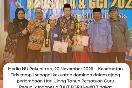Media NU Pakunitran, 20 November 2025 – Kecamatan Tiris tampil sebagai kekuatan dominan dalam ajang perlombaan Hari Ulang Tahun Persatuan Guru Republik Indonesia (HUT PGRI) ke-80 Tingkat Kabupaten Pro...
