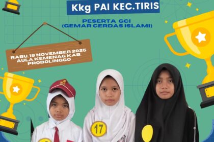 Media Nu Pakuniran, Tiris, (17/11/2025) – Tiga siswa berbakat perwakilan dari Kelompok Kerja Guru Pendidikan Agama Islam (KKG PAI) Kecamatan Tiris, Kabupaten Probolinggo, akan melaju ke ajang bergengs...